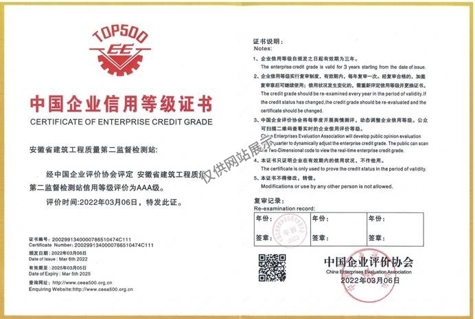 中國企業(yè)AAA信用機構證書